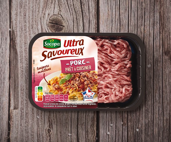 Découvrez notre nouvelle aide culinaire au porc Ultra Savoureux. Élaborée à partir de viande de porc française, moelleuse et savoureuse, elle est idéale pour préparer des plats gourmands (lasagnes, hachis, bolognaise). Rapide et simple à cuire, elle peut se déguster telle quelle ou cuisinée selon vos envies (sauce tomate, herbes, crème fraîche…)
